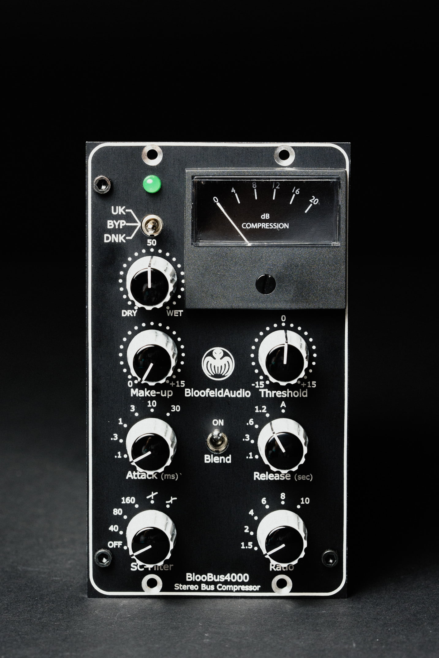 The BLOOBUS4000 is a 2-channel dynamics processor that is perfect to be used as a stereo bus-compressor.